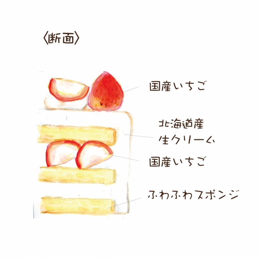 コクのある北海道産生クリームとあま〜い国産いちごを丁寧に焼き上げたふわふわスポンジでサンドしました。いちごと生クリームが織り成すシンプルだからこそ味わえる素材のおいしさに笑顔が溢れます。