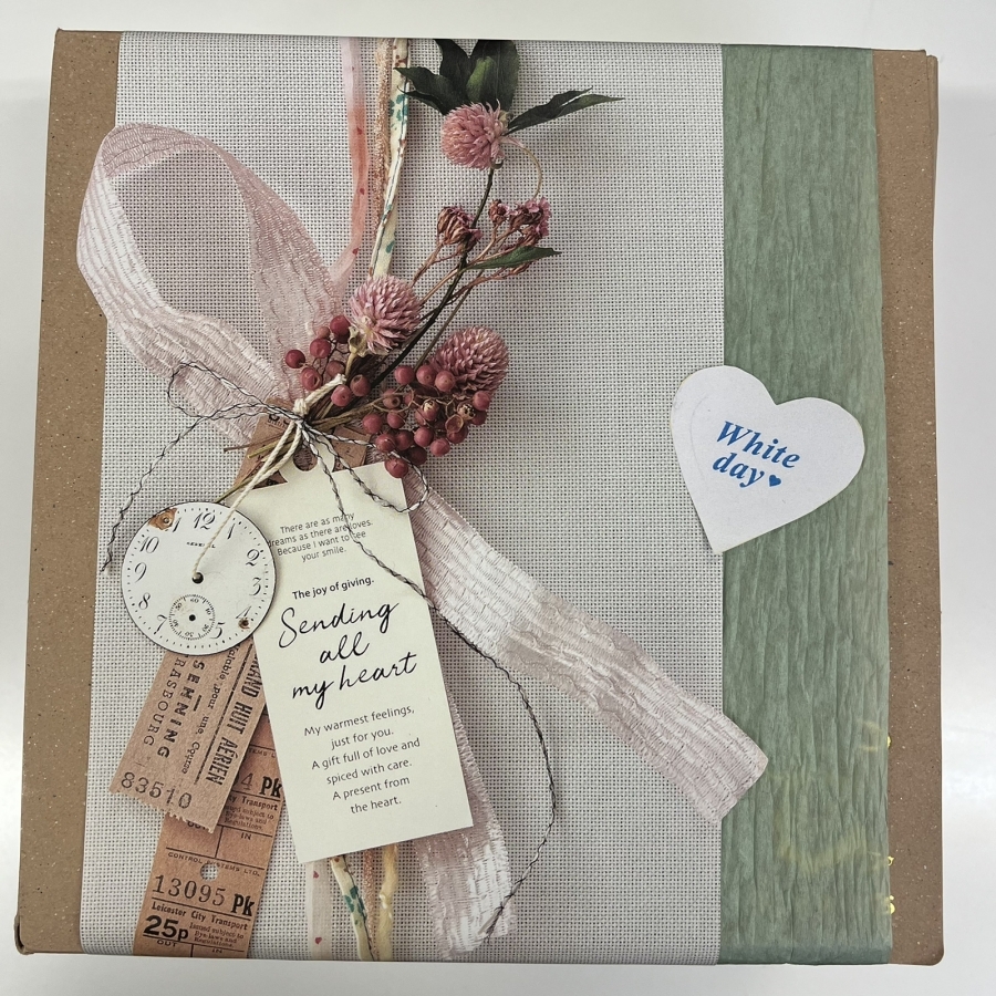 一番人気のチーズケーキとホワイトデーBOXのセットです。