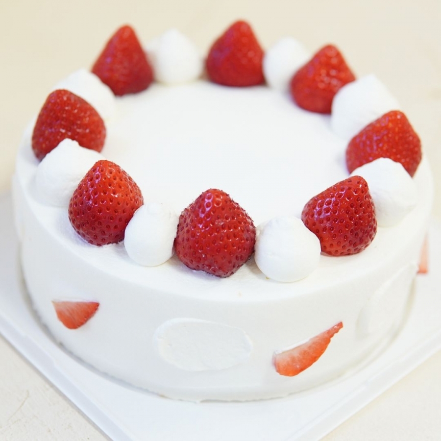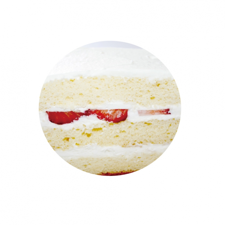 ふわふわのスポンジでおいしい生クリームといちごのスライスをサンドし、