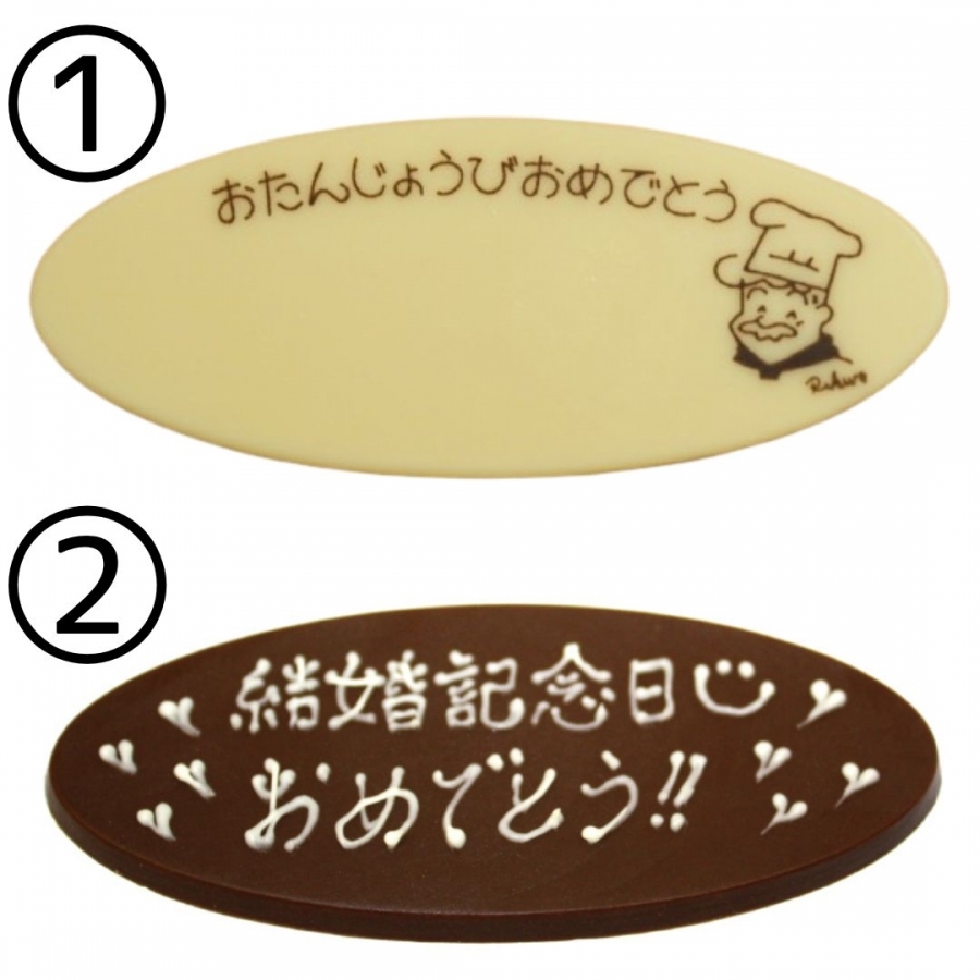 チョコプレート→プレートの種類@またはAのどちらかをお選びの上、入れるメッセージ・お名前をご入力ください。ご入力頂いた通りにかかせて頂きます。20文字以内でお願い致します。絵文字の入力はご遠慮ください。